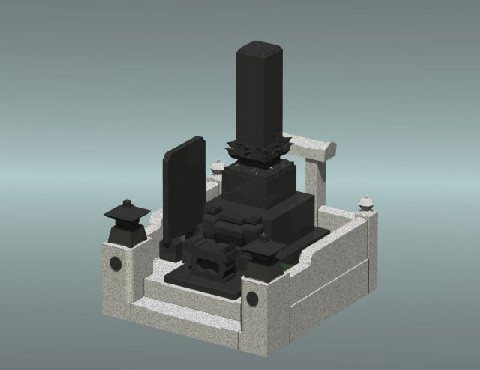 1坪用のタイプのお墓です。お墓参りは通路からになりますが、機能充実、納骨堂の大きさは3坪のお墓と同じぐらいの大きさになっています。